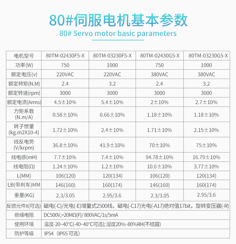 *電機種類多樣(750~1500W,110VAC,220VAC,380VAC,帶制動器,油封等)