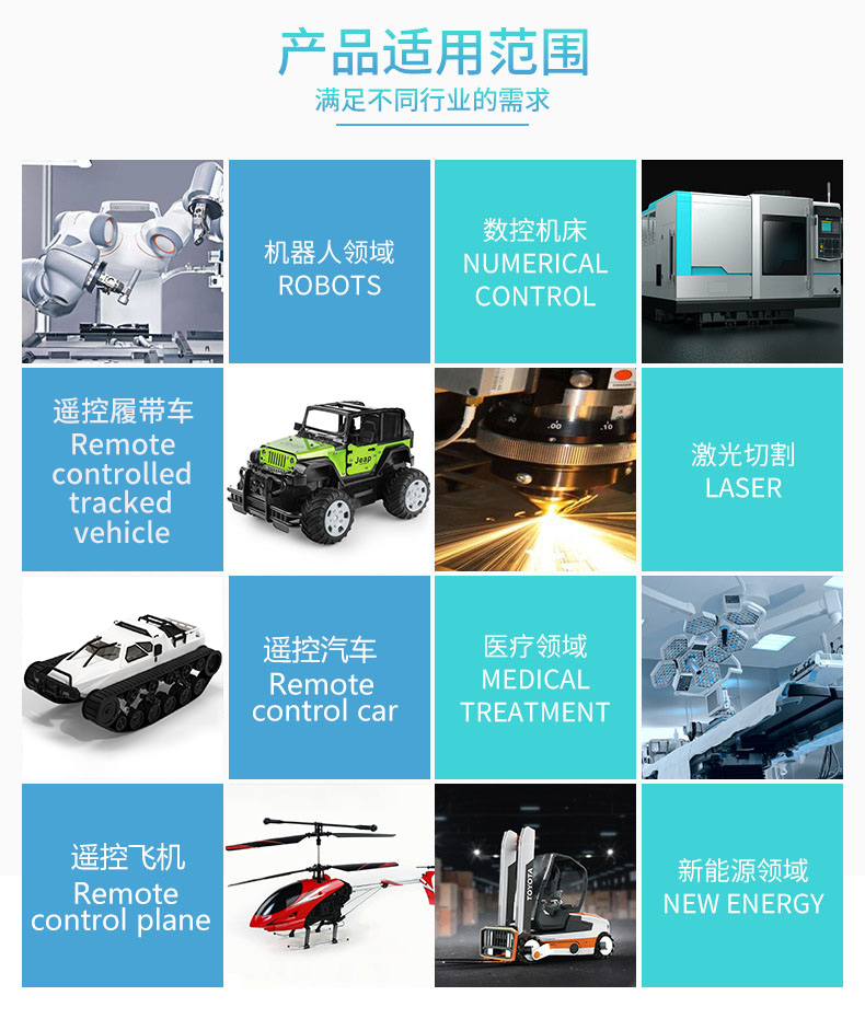 搖控機(jī)器人、搖控汽車、搖控運輸車、電動葫蘆等領(lǐng)域。